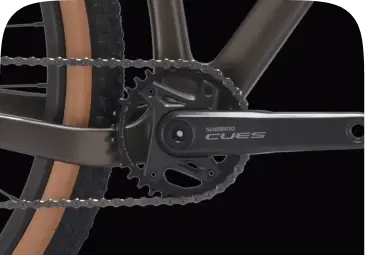 Надёжная 12-скоростная трансмиссия Shimano CUES обеспечивает плавное переключение передач и высокую эффективность педалирования на любых типах рельефа.